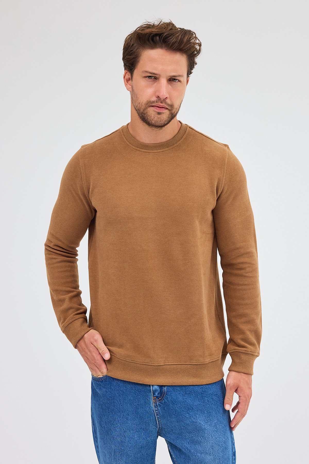 Açık Kahverengi Uzun Kol Bisiklet Yaka Düz Pamuklu Comfort Fit Sweatshirt 1013255150 (1013255150_403)