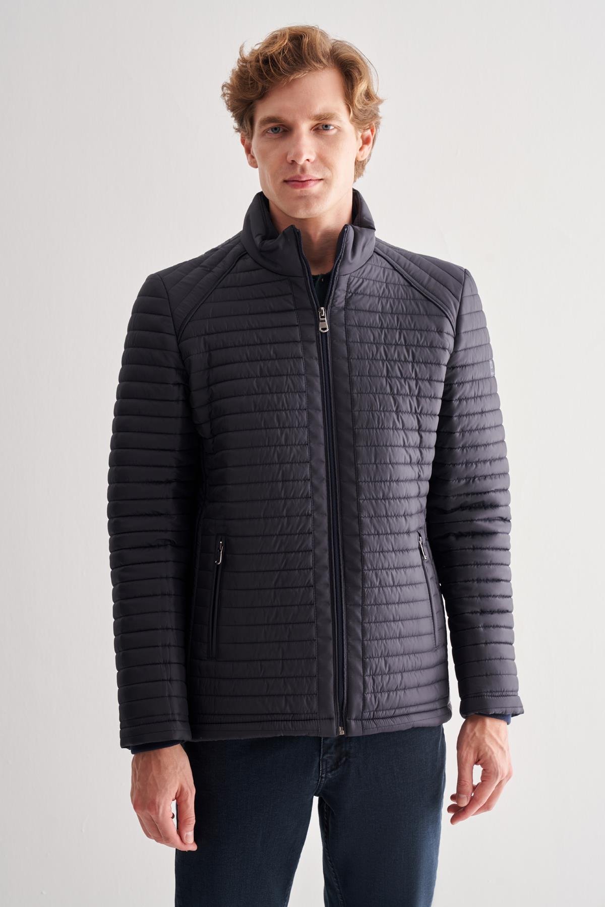 Koyu Lacivert Dik Yaka Tam Astar Casual Slim Fit Kapitone Dolumlu Mont 1007255264 (1007255264_200)