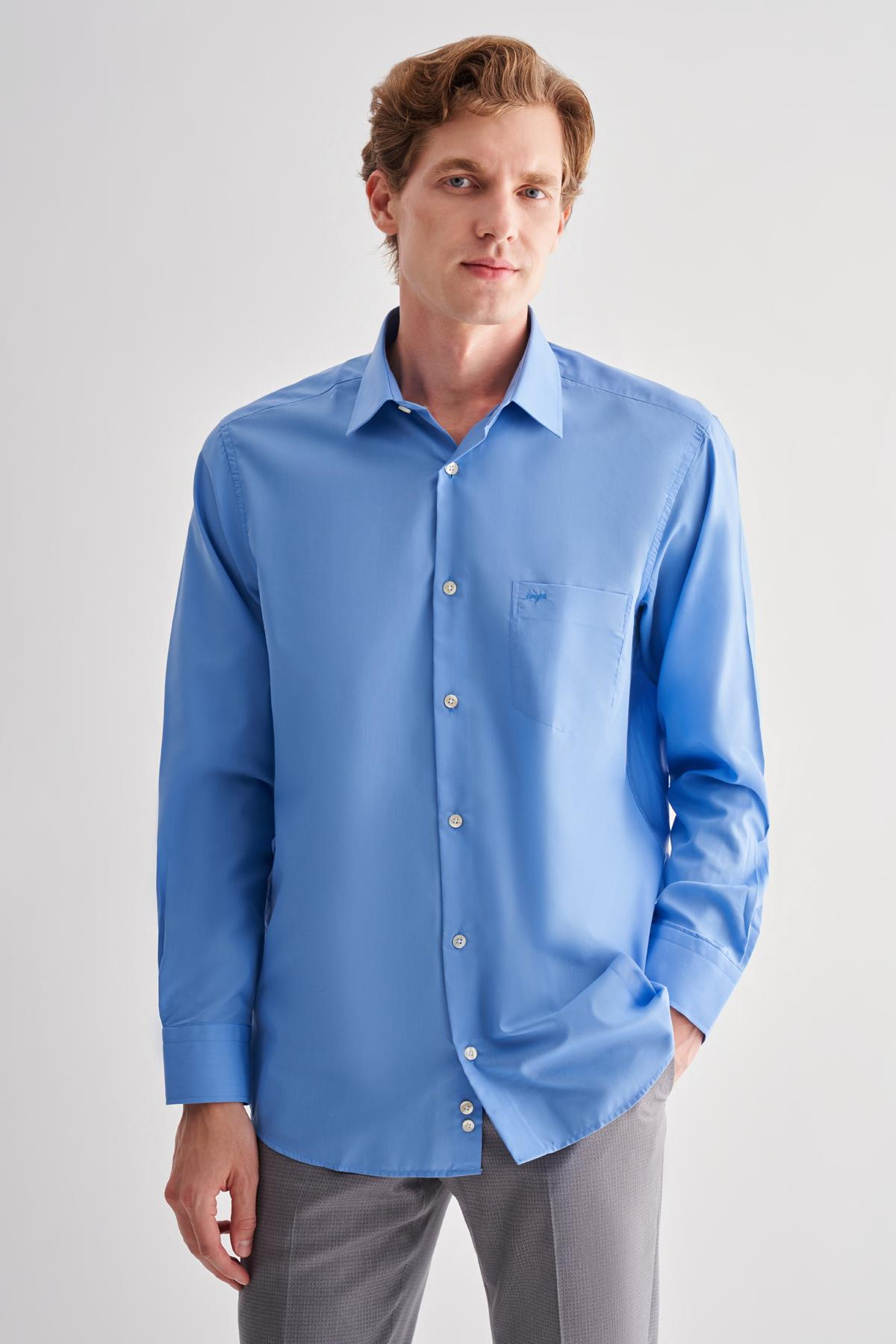 - Saks Sert Yaka Uzun Kol Easy To Iron Comfort Fit Pamuklu Gömlek 1004255182