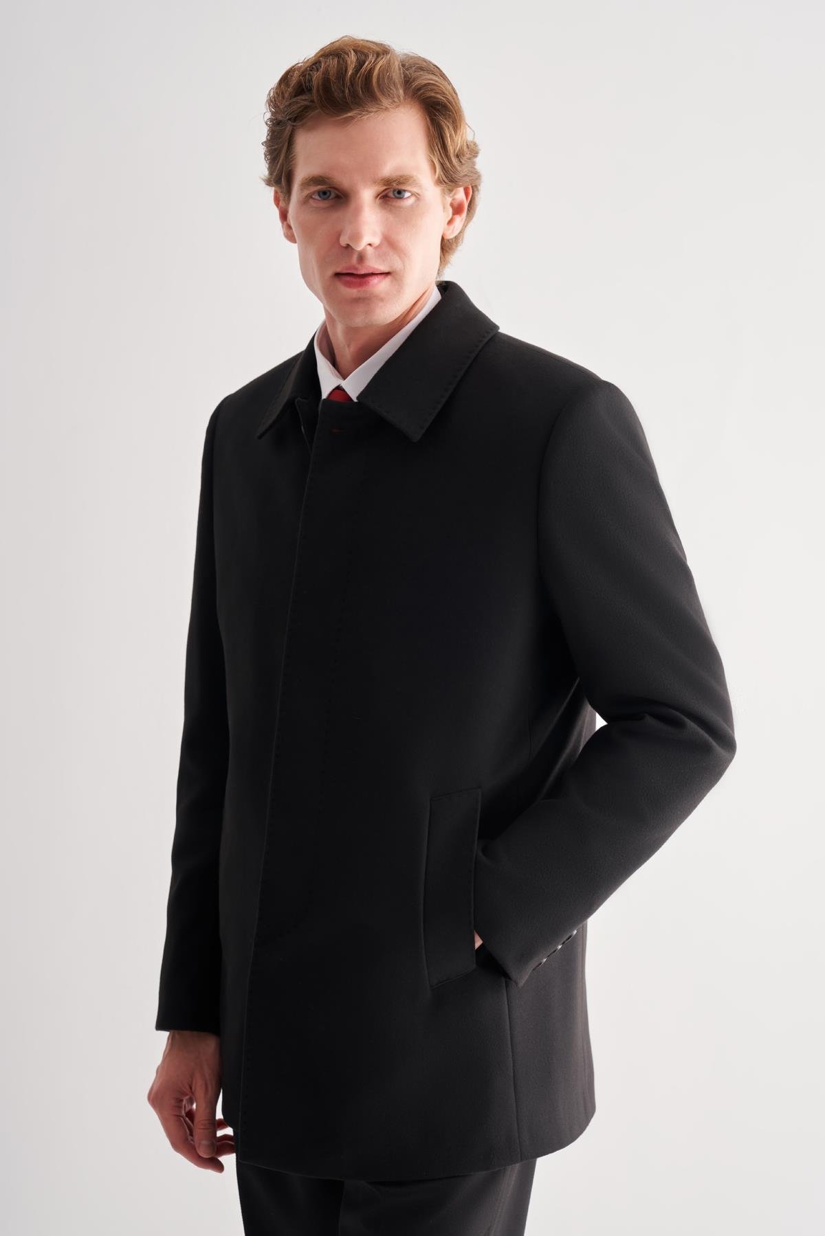 Siyah Kaşe Bebe Yaka Kapitoneli Astar Comfort Fit Rahat Kesim Klasik Kaban 1008245261 (1008255261_001)