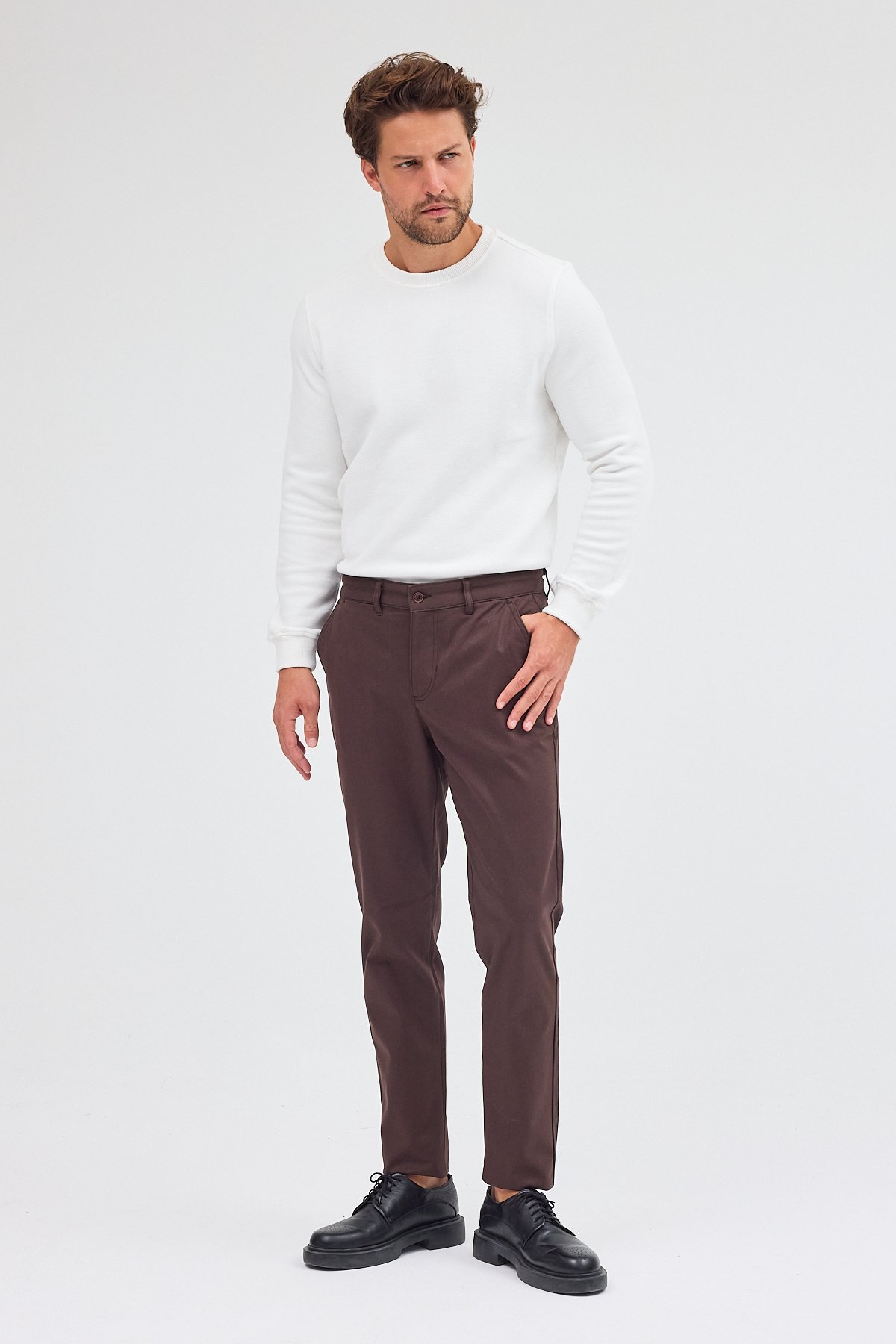 Sütlü Kahverengi Yan Cep Düz Paça Pamuklu Slim Fit Chino Casual Pantolon 1003255155 (1003255155_404)